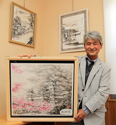 元々絵を描くのが好きだった仲江さんは定年を機に水墨画の通信講座を受講。「白と黒で表現する奥深さ」にひかれ、翌年から姫路市内の文化教室に通っている。