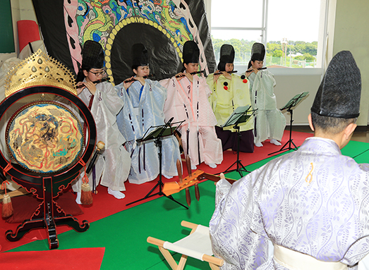 装束を着けて演奏を披露した赤穂高校の伝統芸能研究会雅楽部