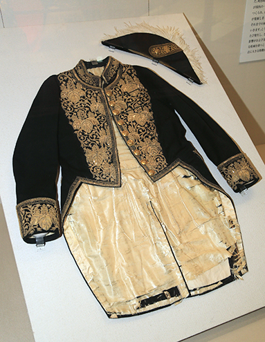 兵庫県を構成する旧五国(摂津、播磨、但馬、丹波、淡路)の歴史文化の特色を紹介する巡回展で、赤穂市立歴史博物館は5会場目。平城京から出土した五国の木簡(複製)、初代兵庫県知事を務めた伊藤博文が着用したと伝えられる礼服、出石焼や東山焼といった各地のやきものなど50点ほどが展示されている。