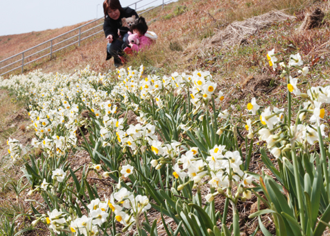 今後、数年かけて補植する計画。植え付け作業に関わった自営業の中西尚さん(62)は「1年目にしてはよく咲いた。来年はもっときれいな“スイセンの道”にしたい」と話していた。