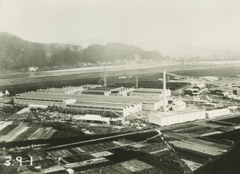 写真の左下隅に「3.9.1」の文字があり、操業開始3カ月前の工場を雄鷹台山から撮ったものと思われる。