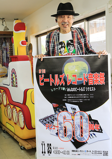 ビートルズに関する2万点を超えるコレクションを保有する「ビートルズ文化博物館」を加里屋に開設している岡本備(そなう)館長(72)が企画。全国のファンから寄せられた募金を活用し、入場無料で開催する。