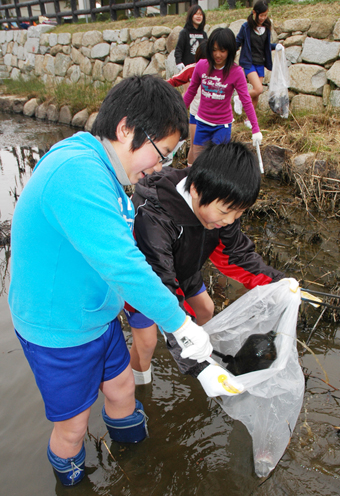 東野優希さん(12)は「加里屋川は自然について学習した場所。一生懸命ごみを拾いました」と話していた。