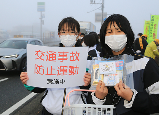 中学生が安全運転呼び掛け 国道2号でキャンペーン