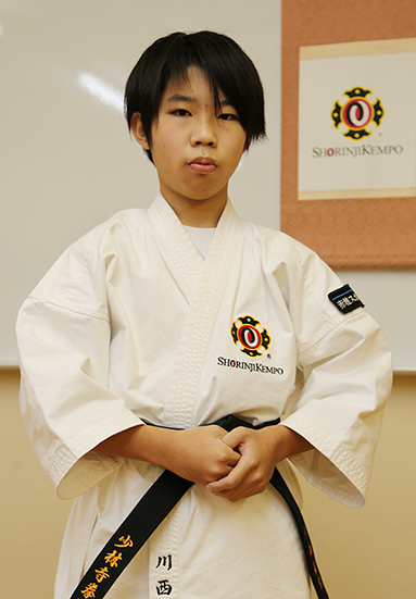 川西君は小1で道場に入門。正確な演武を持ち味に、これまでは組演武と団体演武で活躍し、昨年10月から単独演武の練習を始めた。採点する審判の視点を意識して稽古し、「自信をもって大会に出場した」という言葉通りの結果を出した。来夏の全国中学生大会で入賞を目指す。