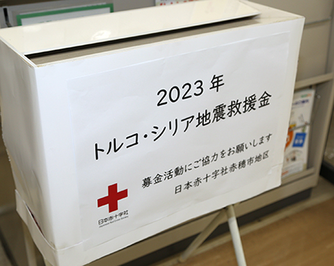 トルコ南部のシリア国境付近を震源に発生した大地震を受け、赤穂市は救援金の募金箱を市役所1階に設置した。