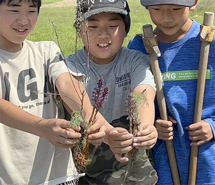 同校では来月に個体数調査を行い、年内にはハマウツボとカワラヨモギの生育を助けるために芝を除去する「芝はぎ」を実施する予定という。「教科書だけでは得られない学びがある」と池田達哉校長。5年の西脇穂華(ほのか)さん(10)は「高雄の宝なので、これからも大切にしていきたい」と関心を示し、木村さんは「サイエンスの視点をもって観察や保護に取り組んでほしい」と子どもたちに呼び掛けた。