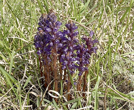 ハマウツボはカワラヨモギの根に寄生する一年草。高雄地区は兵庫県内で2か所しかない自生地の一つで、「地域の宝として守り育てよう」と2004年に発足した「高雄地区水辺づくり協議会」が約1000平方メートルの保護区を管理している。毎年5月ごろラベンダーのような紫色の花を咲かせ、高雄小6年生が総合的な学習の一環で個体数調査や種取りなどを実施している。