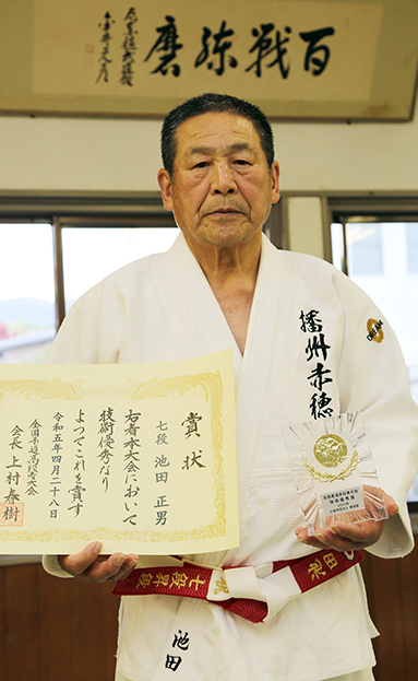 柔道の全国高段者大会で通算4度目の技術優秀賞に輝いた池田正男さん