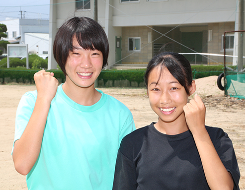 第50回全日本中学校陸上競技選手権大会に出場する藤田莉沙さん(左)と山本彩永さん
