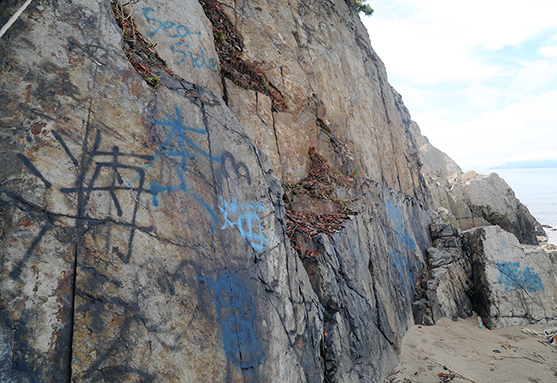 瀬戸内海国立公園の第2種特別地域にある御崎の唐船山で岩肌に落書きが見つかった問題で、土地を所有する赤穂市は赤穂署に被害を申告した。同署が自然公園法違反容疑で捜査を開始した。