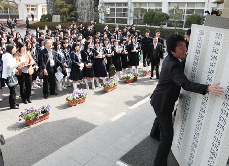 受験生らが固唾を飲んで見守る中、行われた合格発表