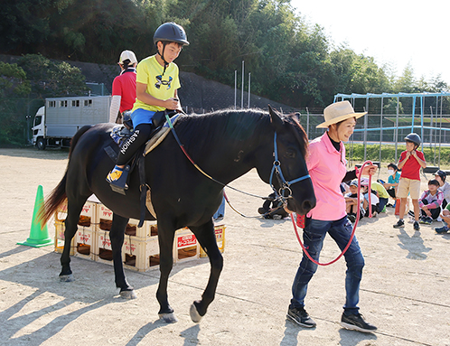初めて馬に乗った5年生の西田文奈(あやな)さんは「揺れて少し怖かったけど、楽しかった」。香山さんは「正しい知識を身につけて、これからも馬との触れ合いを楽しんでもらえれば」と話した。