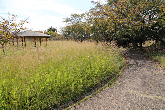 現地を確認すると、随所でススキのような草が大人の背丈ほど伸びていた。園路を歩くには支障はないものの、遊水池のほとりに設置されているベンチのいくつかは草に埋もれ、西寄りに建つ休憩所は生い茂った草に周りを囲まれて容易に近づけない状況だ。一方、隣接する二之丸庭園は草が短く刈りそろえられていた。