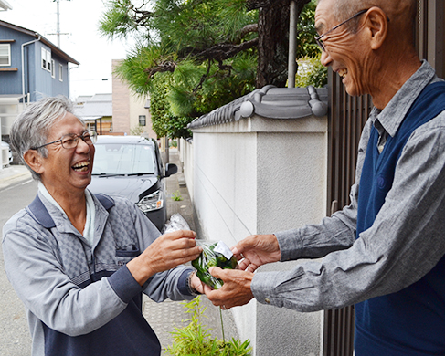 地区の集会所で月2回開く「モーニング会」で提供する朝食の食材にも活用し、新鮮な野菜をふんだんに使ったヘルシーなメニューが好評。採れすぎた作物は旬彩蔵に出荷して、その収益を種や肥料の購入費に充てている。