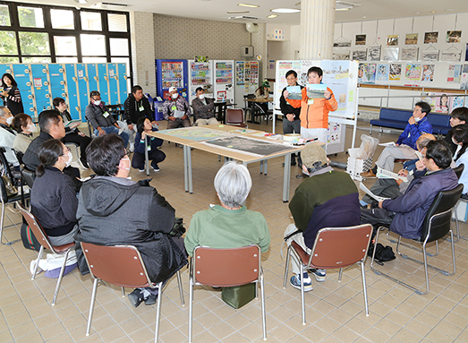 参加者らは車座になり、「雨宿りできる場所が少ない」「自転車の乗り入れを解禁してほしい」「暑さをしのげる木陰が必要」といった意見や要望を率直に発言。「塩味まんじゅうを自分で作れる施設があったらおもしろい」「西日本最大級のドッグラン施設を設けては」といったアイデアも出された。