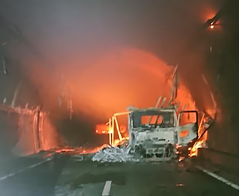 ▼尼子山トンネルで火災=山陽道西行き車線「尼子山トンネル」で車両火災。事故に巻き込まれた車33台のうち23台が炎上。3か月以上通行止めに。
