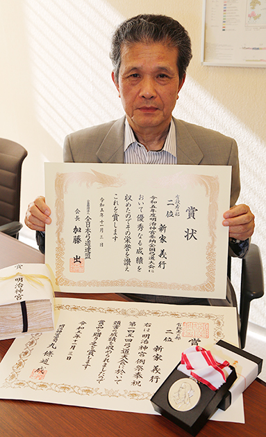 ▼明治神宮奉納全国弓道で2位=有段者の部で赤穂弓友会理事の新家義行さん(68)=五段、塩屋=が2位。