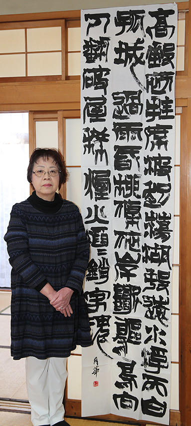 ▼清水まみさんの談話=「自分の力を出し切ろうと、応募締切ぎりぎりまでかけて取り組みました。書には終わりがありませんので、いつまで続けられるかわかりませんが、これからも頑張りたい」
