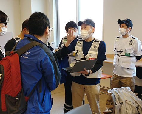 まずは立ち上がったばかりの本部で機能整備を支援。珠洲と輪島にも活動拠点を設け、後続隊の受け入れ体制を整えた。独立行政法人国立病院機構の災害派遣医療チーム(DMAT)と連携して各地の避難所へ隊員を派遣。寄せられる情報を基に重症患者の搬送を手配するなど連絡調整に従事した。8日には1次隊と入れ替わりで2次隊が能登入り。避難所となっていた中学校や小学校で診察と感染症対策など衛生環境改善に取り組んだ。