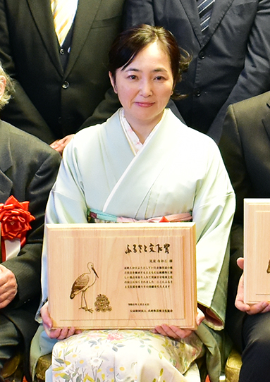 永年にわたりひたむきな努力を続け、伝統文化を守り育てた功績を称える公益財団法人兵庫県芸術文化協会の「第42回ふるさと文化賞」の授賞式が24日、神戸市中央区の兵庫県民会館であり、赤穂緞通作家の見並なおこさん(47)=上郡町高山=が受賞した。