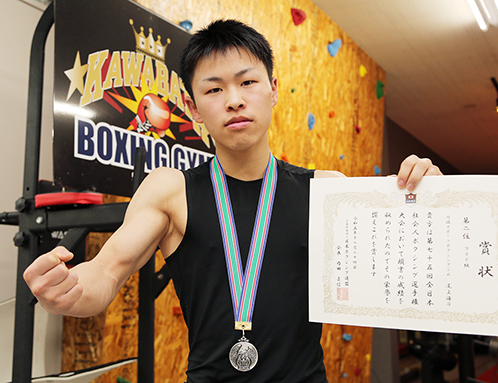 働きながらボクシングに打ち込む高野の尾上海斗さん(21)が全日本社会人選手権(昨年12月20〜24日、三重県四日市市)のフライ級で準優勝。「次は優勝する」と意気込んでいる。