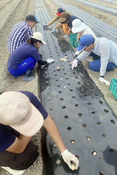 青空の下の農作業は利用者からも「楽しい」「また行きたい」などと好評。今後は野菜に加えてフルーツ関連の仕事の受注を目指して連携先と調整する予定といい、「今後も障がいのある方が地域で活躍でき、農福連携を通じて地域貢献できるよう努めていきたい」(東係長)と話している。