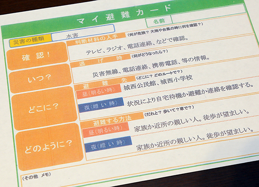 行政も普及啓発に取り組んでいる「マイ避難カード」のサンプル