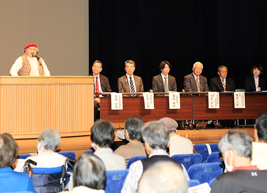 講演会は中広の赤穂化成ハーモニーホールであり、約100人が参加。牟礼正稔市長、梅田修作・上郡町長、長岡壮壽県議らが来賓として出席した。牟礼市長はあいさつで市内2か所で計画がある産業廃棄物最終処分場建設に触れ、「千種川と瀬戸内海の豊かな自然を阻害するもの」として改めて「計画反対」の立場を示した。