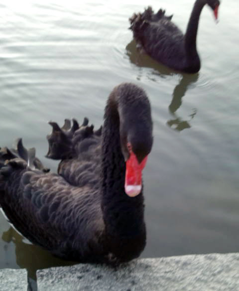 元気だった頃のオスのコクチョウ。奥はメス=読者提供