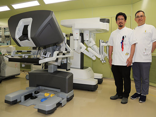 手術支援ロボット「ダヴィンチ」の運用を始めた赤穂中央病院泌尿器科の中山恭樹部長(右)と長尾賢太郎医師