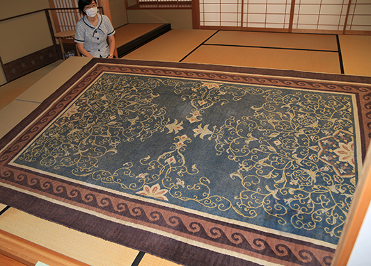 三畳敷の赤穂緞通『唐草に蔓草文・縁波文に無文』