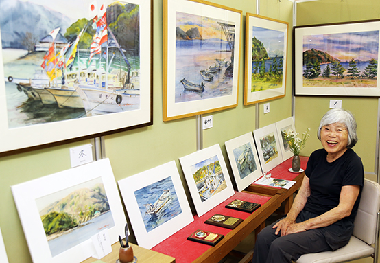 大好きな坂越浦の風景を描いた作品を展示している市宮千種さん