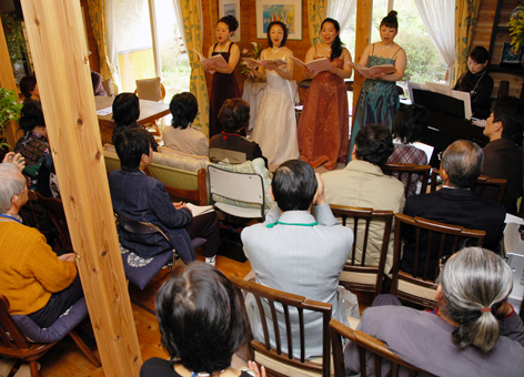 歌声に聞き入った元沖町の主婦、黒田美奈子さんは「生の演奏っていいですね。うっとりしてしまいました」と話した。