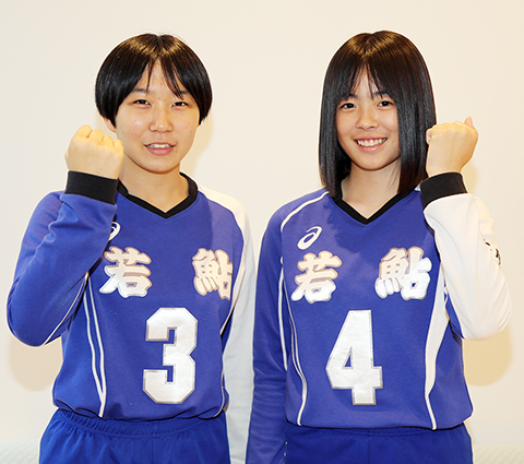 2人とも1年時からベンチ入りしており全国大会は3度目だ。今季セッターからアタッカーに転向した安達さんはキャプテンとしてもチームをまとめる。苔縄さんもアタッカーで、試合の流れを変えるプレーを心掛ける。「攻撃時のコンビネーションやレシーブの強化に重点を置いてきた」という練習の成果を全国大会でも発揮し、頂点を目指す。