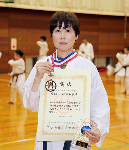 空手道の4大流派の一つ、糸東会の第64回全国選手権大会(8月17・18日、東京武道館)のシニア女子2部(50歳以上)組手で、中浜町の橋本和歌子さん(53)が2年ぶりに優勝。1部(40〜49歳)を含めて通算3度目の頂点に立った。
