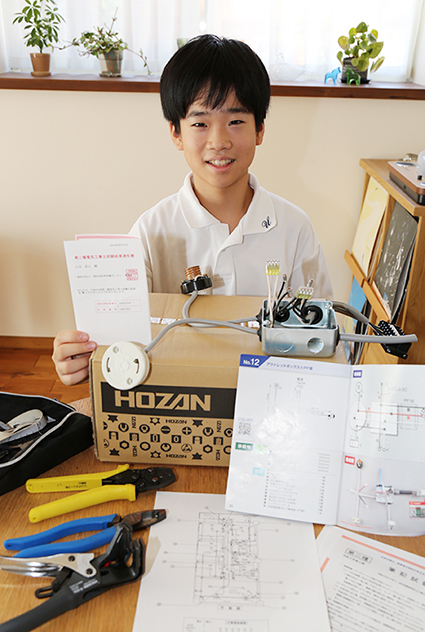 電気設備工事に必要な国家資格の第二種電気工事士試験に東有年の中学1年、山谷彩人君(12)=有年中=が合格。初めての挑戦で見事にパスした。
