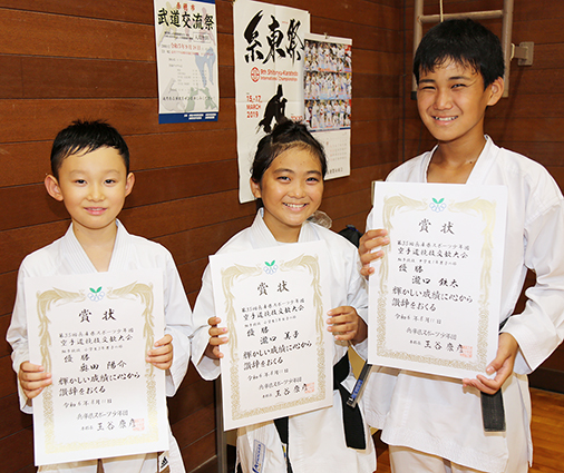 奥田君は力強い技を連続で出せる攻撃力が強み。美子さんは技が多彩で所属流派の強化選手にも選ばれている逸材で、兄の鉄太君は自在に技を繰り出す器用さがある。今大会の優勝が自信になったといい、3人は「次の目標は全国大会優勝」と口を揃えた。