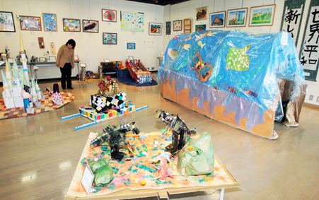 この作品展を目標に一年間準備してきたという力作揃い。素直な感性を表現した約150点が並んでいる。