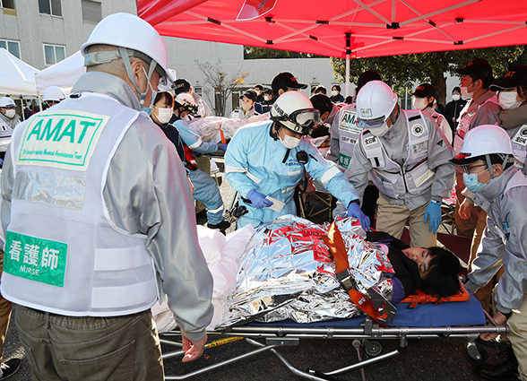 「四国沖で発生した大地震に伴い、赤穂市で震度6弱の揺れを観測し、負傷者が多数出ている」といった想定で、東京や大阪などの系列病院のほか、消防や警察を含め総勢約300人が参加した。