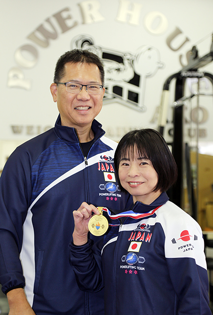 パワーリフティング世界選手権で最年長優勝記録で金メダルに輝いた福島友佳子さんとセコンドの夫・和文さん