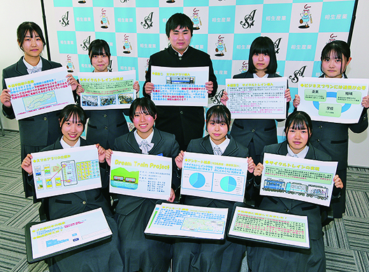 ▼JR赤穂線政策コンテストで優秀賞=データによる地域課題の分析を踏まえた地域活性化プランを競う「地方創生☆政策アイデアコンテスト2023」の官民連携の部で相生産業高校商品開発チームが優秀賞。