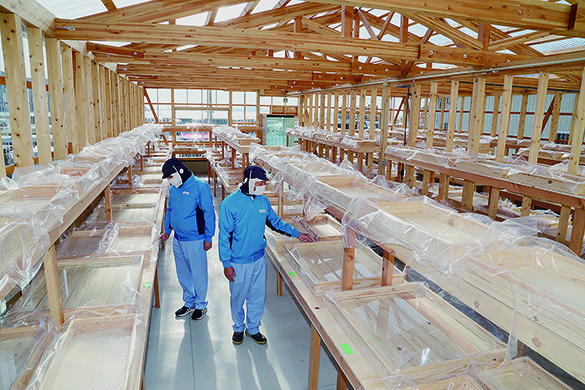 ▼オリジナル天日塩を受注生産=坂越の製塩会社「赤穂化成」は天日塩生産施設「天のハウス」を新設。オーナーの要望に応じて塩分やミネラル量、結晶の大きさを調整する受注生産を始めた。