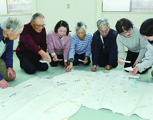 ▼災害に備え「マイ避難カード」=いざという時の迅速な災害避難に役立てようと、上仮屋地区の高齢者クラブ「赤城会」(榊敏会長)が「マイ避難カード」の作成に取り組む。