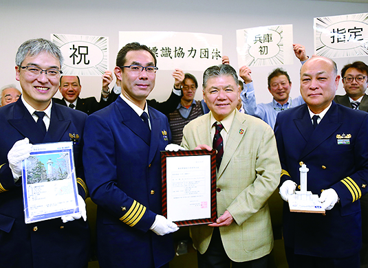 ▼航路標識協力団体に県下初=灯台を地域のシンボルや観光資源と位置付け、海上保安庁と連携して地域活性化などに取り組む「航路標識協力団体」に赤穂観光協会(春本新二会長)が指定された。