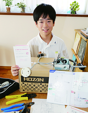 ▼第二種電気工事士に中1生合格=電気設備工事に必要な国家資格の第二種電気工事士試験に東有年の中学1年、山谷彩人君(12)=有年中=が初挑戦で合格。