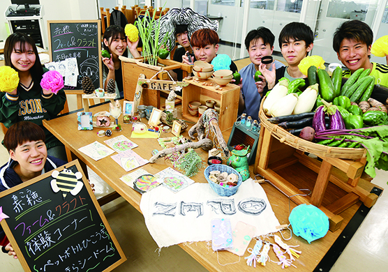 ▼学生らが期間限定の仮設ショップ=関西福祉大生らが、赤穂市内の農家が丹精込めて育てた農産物と学生たちの手作り雑貨などを販売する「赤穂ファーム&クラフト」を1か月限定でオープン。