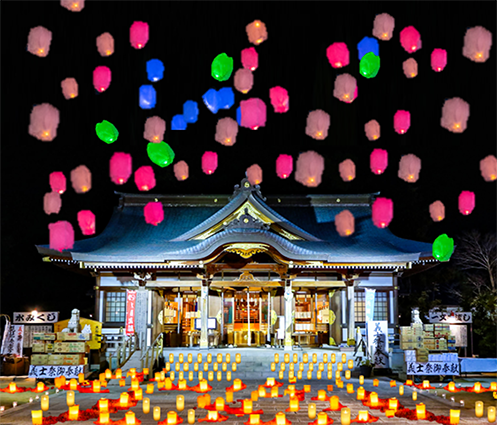 参加費はランタン1個2500円、キャンドル1本1500円。当日午後4時から6時半まで境内で願い事を書くブースを設け、7時に一斉にランタンを飛ばす。会場では音楽イベントや和太鼓演奏、キッチンカーなどを楽しめる。強風など悪天候の場合は13日(日)に順延。
