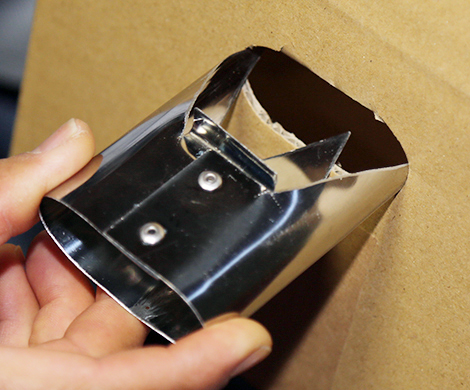 受賞作は3本の鋭利な爪がついたステンレス製。段ボール箱の側面に突き刺して穴を開けることで簡単にきれいな取っ手を作ることができるというもの。スーパーで買い物した商品を取っ手穴のない段ボール箱に入れて持ち帰ろうとして持ち運びに苦労したことで思いついたという。