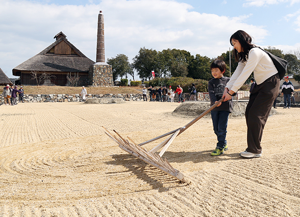 復元塩田で昔の塩づくりを体験